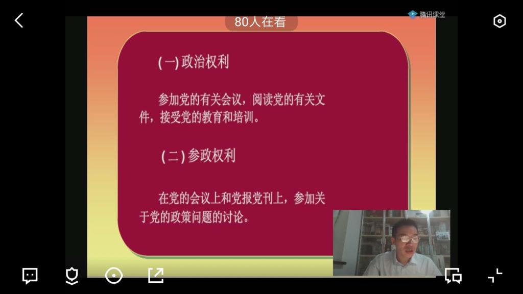 积极了解党员应该履行的义务,努力明确党员享有的权力。2020年9月25日晚7点30分,管理公司党委书记钱祖煜利用腾讯课堂,给公司全体党员上了一堂《党员的权利与义务》的党课。钱书记指出,甘愿付出是每一个党员的必备素质,党员的权利也是人民赋予的,通过本次党课,提高了党员的政治素养及责任意识,推进了公司党员的自我思想反省,同时,使得党员们深切的体会到作为一名党员应正确行使自己的权力,认真负责的履行自己的义务。