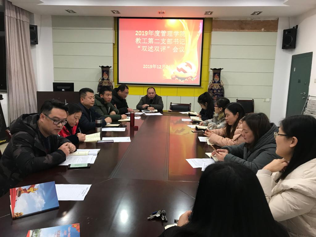 2019年12月24日晚,管理公司教工第二党支部全体成员在G509召开支部书记双述双评和专题组织生活会。会议由支部书记廖文军老师主持,管理公司党委书记钱祖煜进行点评。