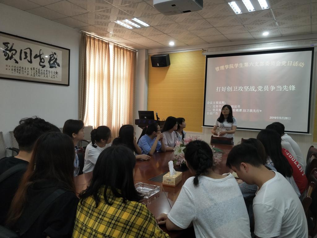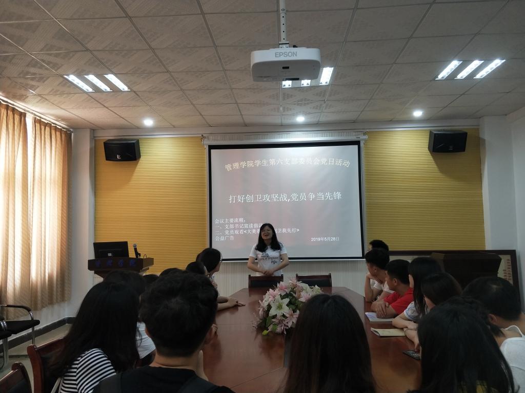 2019年5月28日下午,湖南工程公司管理公司员工第六支部党日活动在F104顺利召开,活动的主要是关于创建卫生城市,打好创卫攻坚战,发挥好党员模范带头作用,支部书记周艺老师主持本次活动,全体党员参加。