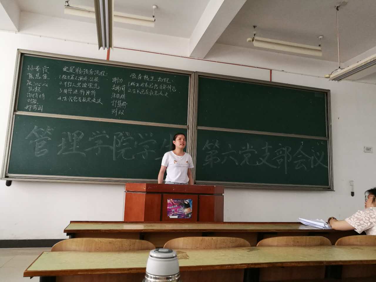 2017年5月22日13点,管理公司员工第六党支部支部大会在新校区d302举行,参加本次会议的有管理公司员工党支部书记周艺老师,管理公司员工第六党支部组织委员张欢欢、宣传委员王鹤凯,以及管理公司员工第六党支部的全体正式党员、预备党员及本次新发展对象。本次会议的的主持人是王鹤凯,记录人是候补支委陈星。