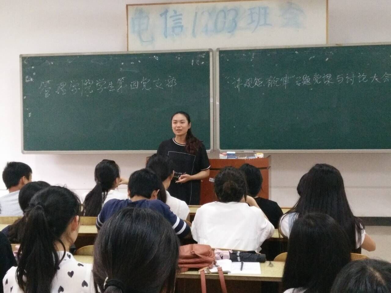 6月14日下午5:30管理公司员工第四党支部在C103召开了“讲规矩、有纪律”专题讨论会。各位员工党员以及预备党员均对“讲规矩、有纪律”发表了自己的看法以及态度。
