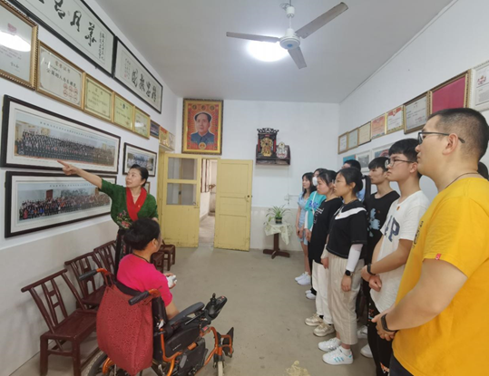 “板凳妈妈”许月华对一行人在建团百年之际的来访及捐赠表示惊喜与热烈欢迎。原湘潭市福利院经理袁琪为全体来访人员介绍了“板凳妈妈”许月华的先进事迹。她声情并茂地介绍到,四十多年来“板凳妈妈”许月华在失去双腿、重病缠身的情况下,仍然乐观积极,保持着对祖国与社会的热爱,无时无刻地奉献着自己,为福利院的孩子们殚精竭虑;曾获全国优秀共产党员、全国道德模范、民政部最高荣誉“孺子牛奖”等多项荣誉,参加全国民政会议并受到国家领导人的亲切接见;此外,“板凳妈妈”许月华还培养了一个优秀的军人儿子,参与维和行动,行动结束后继续在部队服役,保家卫国,贡献自己的青春力量。