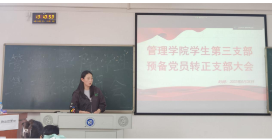 为进一步健全和完善支部组织建设,增强组织生机与活力。5月25日中午12:30,管理公司员工第三支部委员会在新校区教学楼B栋407召开预备党员转正大会,讨论黄薇等14名预备党员的转正问题。会议由支部书记陈祎婷同志主持,支部共25名正式党员、33名预备党员参加会议。
