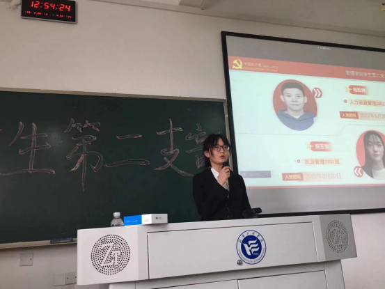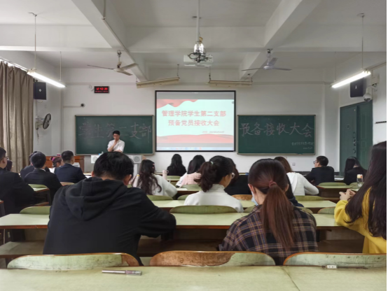 2022年5月20日12:30管理公司员工第二党支部在教学楼B406召开支部大会,讨论是否接收袁采玉等7名同志为中共预备党员的相关事宜,会议由支部书记罗蒙主持,支部全体正式党员、预备党员及拟接收预备党员共45人参与了本次会议,会议严格按照组织发展程序进行。