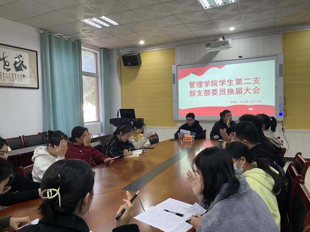 会议开始,由支部书记罗蒙同志代表上届党支部委员会做工作报告,报告指出经过上届党支部委员会成员的不懈努力支部各项工作按时有序完成。报告结束后,具有表决权的党员对上届党支部委员会的工作报告进行审议表决。本次会议的第二项选举新的支部书记一名、副书记一名、组织委员、宣传委员、纪检委员各一名。经全体正式党员投票,支部书记由罗蒙同志担任、支部副书记由包海燕同志担任,委员由龙瑾偲、邵婷,李佳鹏担任,其中龙瑾偲担任组织委员,邵婷担任宣传委员,李佳鹏担任纪检委员。会议选举结果将会向上级党组织报批。