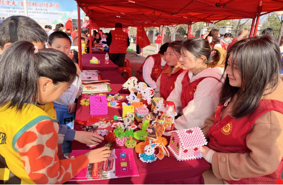 义卖活动递爱心。红色的桌布上陈列着一件件串珠工艺品,精致美丽,巧夺天工,这是由亲园培智残疾人托养中心的残障人士亲手编织的。“快来看啊,这里有精美工艺品”、“买走的是幸运,留下的是爱心,传递的是温暖。”来自会计学2004班的党员唐亚兰同学热情叫卖,向来往的群众们详细讲解工艺品的制作过程和残障人士背后的励志故事。为了筹集更多的善款,党员志愿者们热情招揽着前来选购的顾客,很多家长带着小朋友挑选心仪的工艺品,纷纷拿起手机扫描二维码付款来支持此次的爱心义卖活动,整个义卖现场暖意涌动,爱心浓浓。
