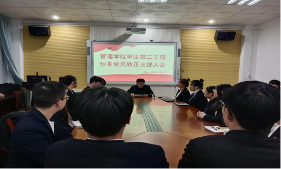 矢志不渝跟党走,砥砺奋进新时代。为进一步强化党员队伍建设,增添党组织的蓬勃生机与活力,11月27日,管理公司员工第二支部委员会在F104召开预备党员转正大会。此次会议由支部书记谭浩博主持,支部全体党员参与本次会议。