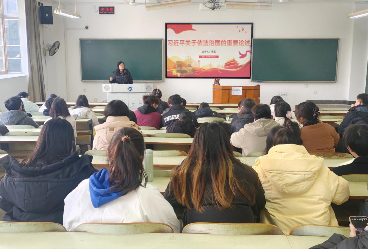 会议伊始,支部书记周艺带领大家认真学习了习近平总书记关于依法治国的重要论述。她指出,习近平总书记的重要论述深刻揭示了法治建设的内在规律,为新时代推进全面依法治国提供了根本遵循。在法治的框架下保障全体公民享有广泛权利是现代法治国家的本质特征,依法治国不仅能够推动经济、政治、社会、文化和生态文明等全领域的法治建设,而且也有助于实现国家治理现代化。