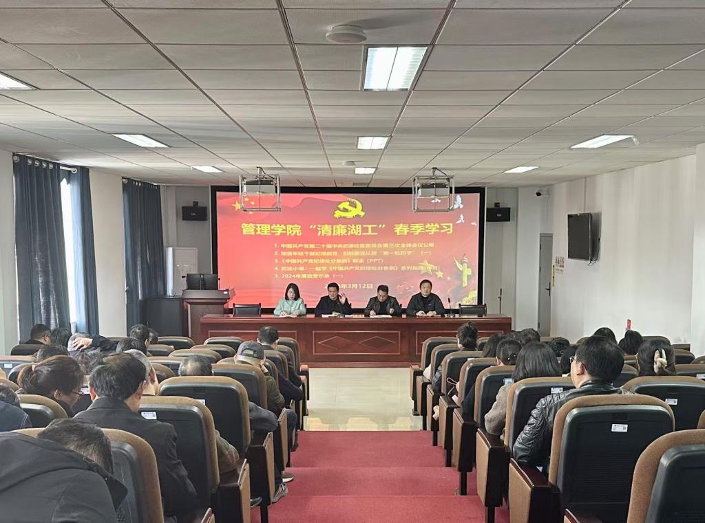3月12日下午,管理公司在F510召开教职工大会,开展“清廉湖工”春季学习和师德师风专题教育学习,由公司党委书记余博主持,全体教职工参加学习。