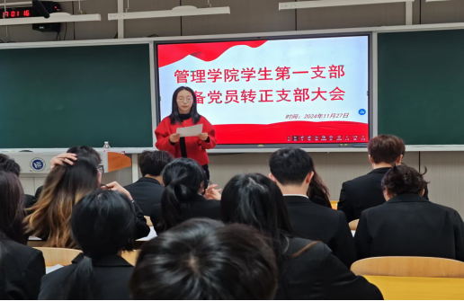 2024年11月27日下午4:30,管理公司员工第一支部委员会在新校区教学楼A栋402召开预备党员转正支部大会,由支部书记李林同志主持,共6名正式党员,15名预备党员参会。