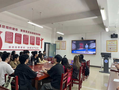 2024年4月22日下午,经济公司员工党支部书记李军花组织员工党员在教学楼G-115观看《传承红色保密基因》系列纪录片。