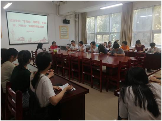 7月6日下午3点,经济公司员工党支部在主校区G115召开以“学党史、悟思想、办实事、开新局”为主题的组织生活会,员工党支部书记李军花主持会议,全体员工党员参加。会上,李军花组织党员认真学习了习近平总书记在庆祝中国共产党成立100周年大会上的重要讲话。全体同志对习近平总书记在庆祝中国共产党成立100周年大会上的重要讲话有了更加深刻的理解,纷纷表示要牢记初心使命,坚定理想信念,践行党的宗旨,为实现中华民族伟大复兴奉献青春力量。