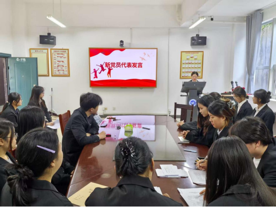 张瀚兮代表转正党员作出郑重承诺,将以成为正式党员为全新起点,始终牢记党员身份,严守党的纪律,持续深化党的创新理论学习,不断提升党性修养与综合能力;在学习科研中勇攀高峰,在服务同学中主动作为,以实际行动践行共产党员的初心使命,为公司发展、公司建设与党组织事业贡献青春力量。