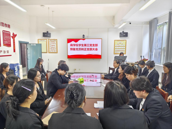 大会严格遵照预备党员转正规定流程,全程严肃规范、井然有序。王艺璐等3名预备党员依次登台,围绕预备期内的政治理论学习成效、学业工作实践成果、党性修养锤炼过程展开详细汇报。随后,党支部组织委员赵丽萍代表支部委员会,向与会党员报告了对3名同志预备期间的教育培养、日常考察情况,经无记名投票表决,大会最终一致同意3名同志按期转为中共正式党员,其党龄自 2025年11月25日起计算。