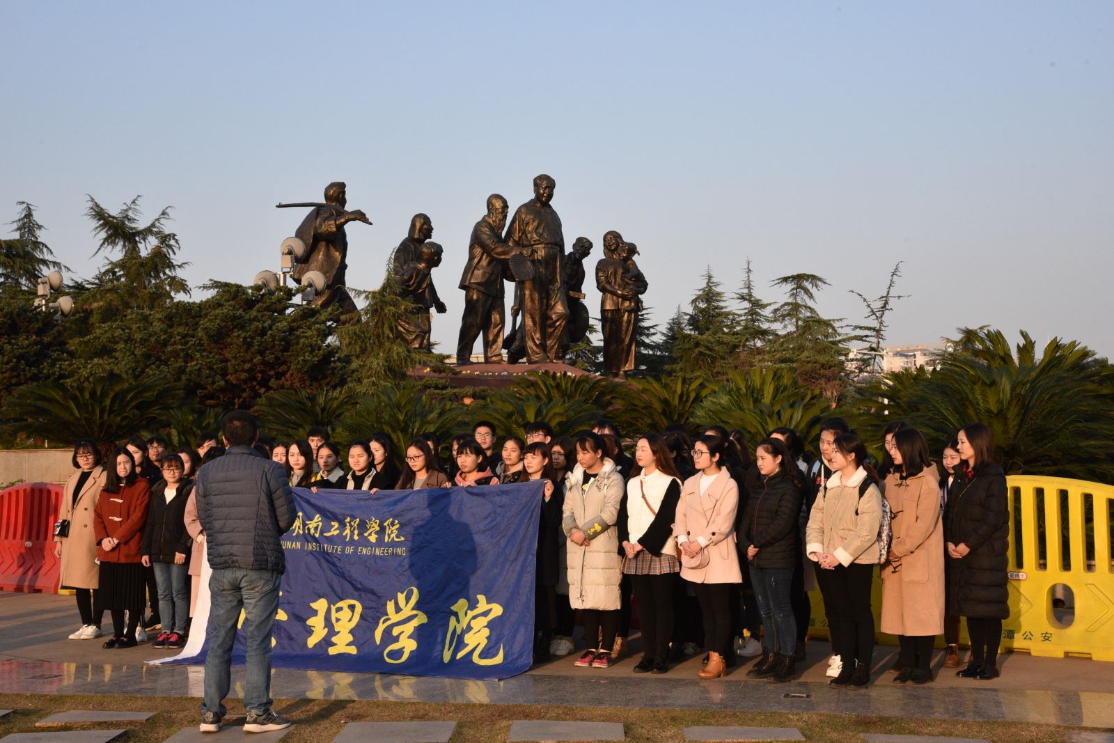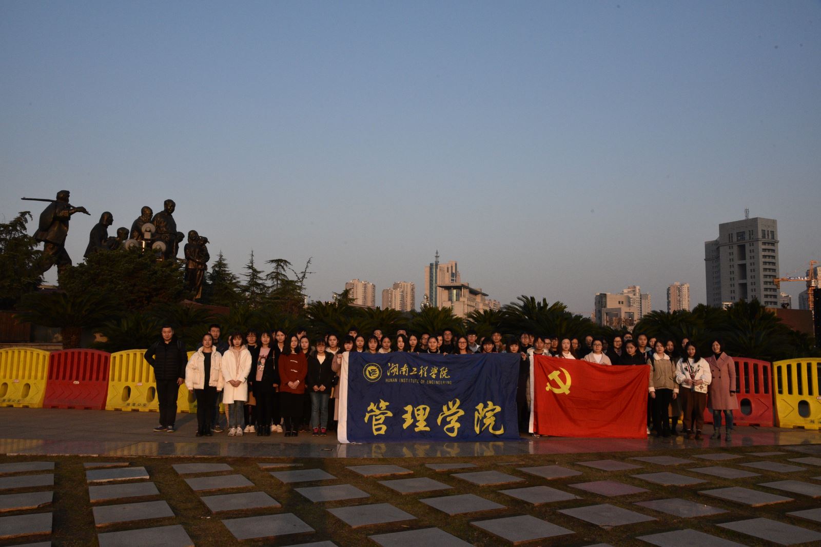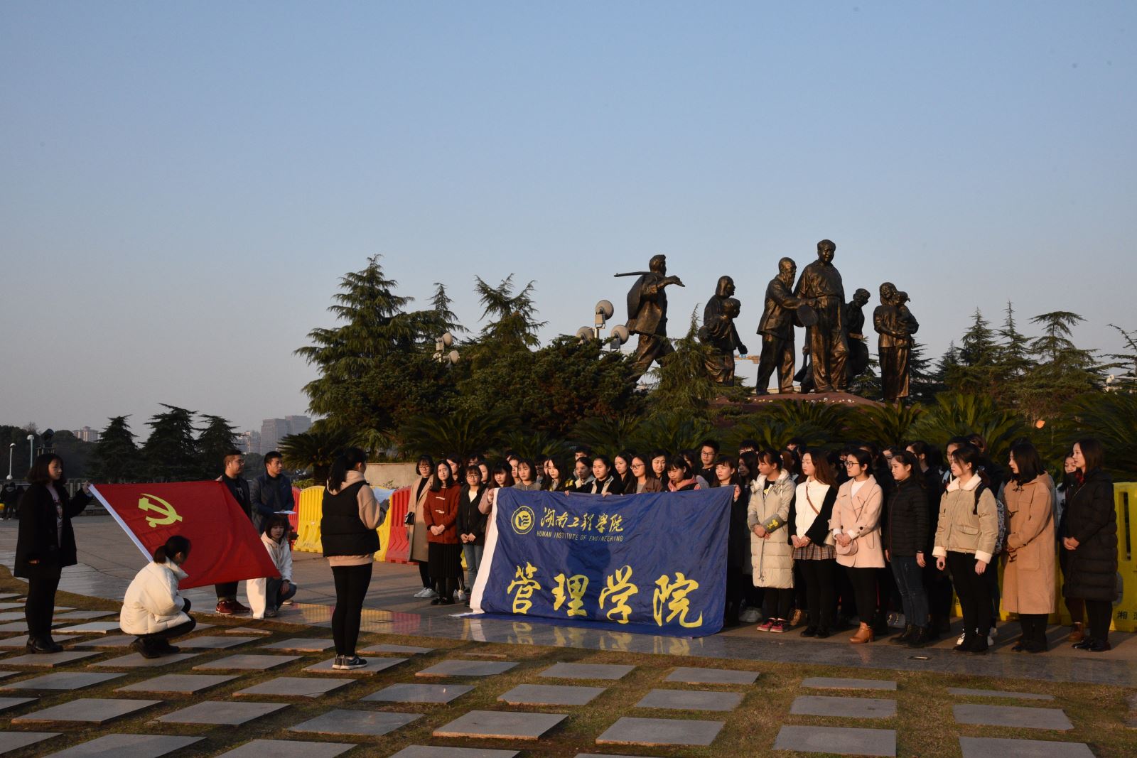 2017年12月25日星期一下午16:30,中共湖南工程公司管理公司员工党总支部组织全体预备党员前往湘潭市东方红广场乡情铜像前进行庄严宣誓,公司党总支副书记钱祖煜,各员工党支部书记和支部委员,以及2017年发展的56位预备党员参加此次宣誓活动。