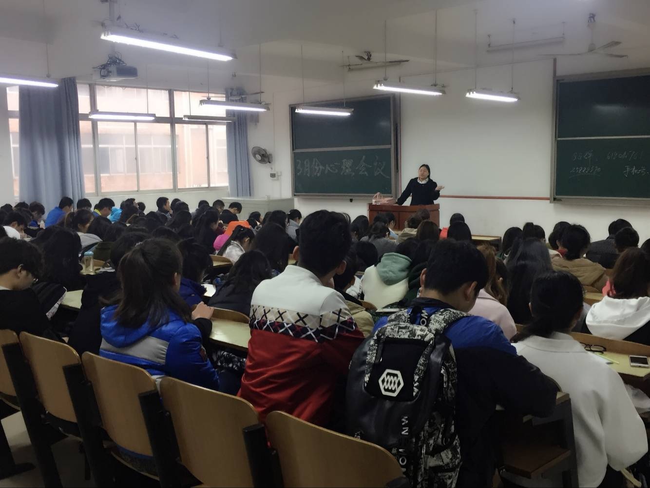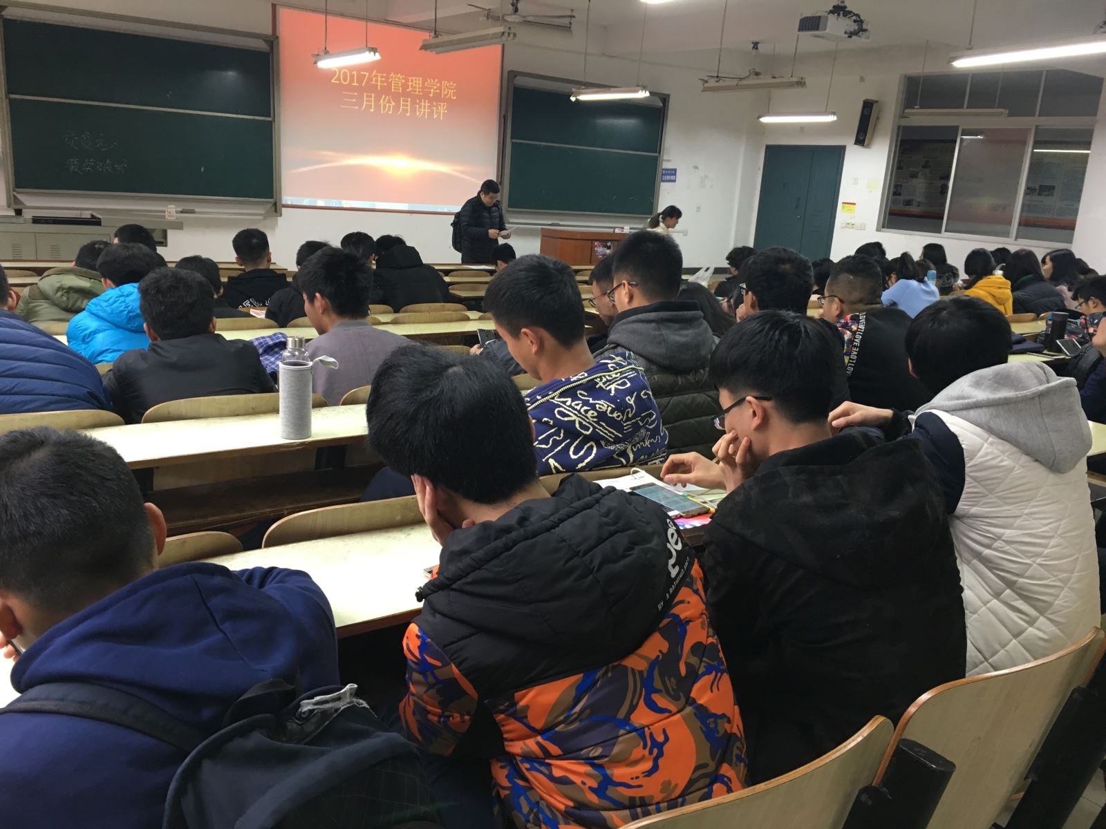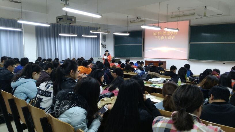 2017年3月13日中午12:20,管理公司工商管理、会计学单学号、物流管理、资源人力、旅游管理全体人员,在主校区教室内进行本学年第一次月评会议。学办辅导老师罗荃、黎博、包海燕、周艺、宋志航对工商管理、旅游管理、人力资源管理、会计学、物流管理六个,专业展开本月讲评。本次会议还有一道靓丽风景,由单艳艳老师召开心理专项会议。心理会议由大一全体心理委员、心理朋辈辅导员、寝室长,以及心理部部干事到会。