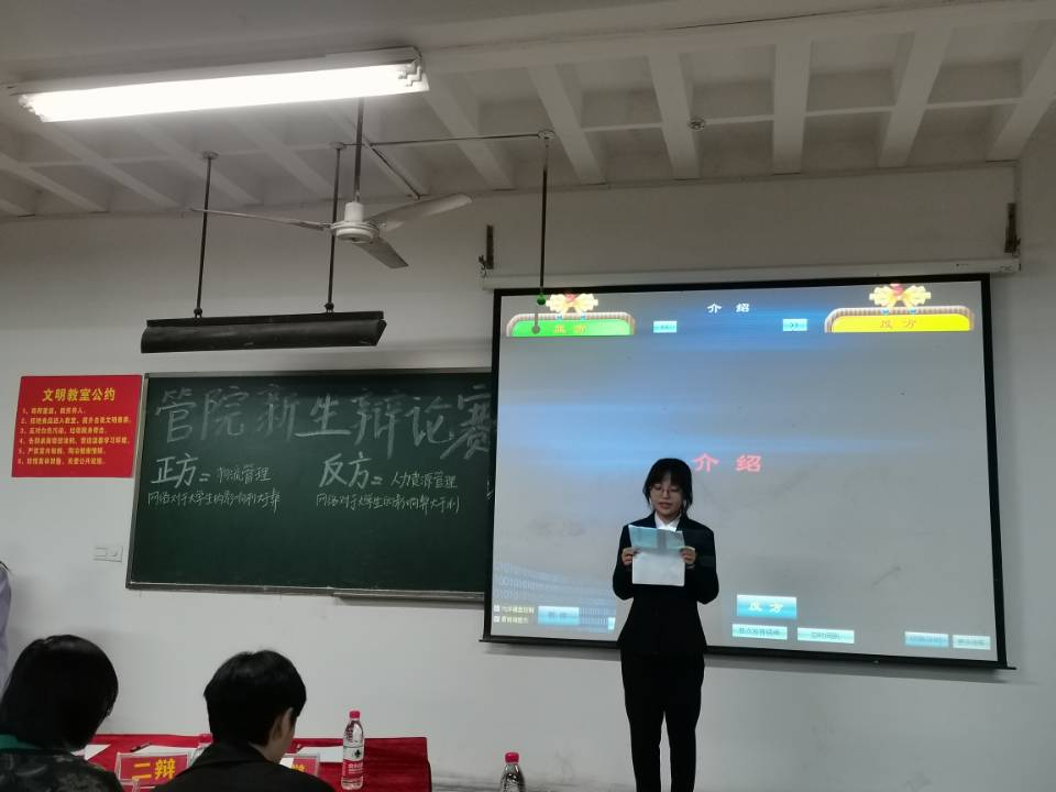 为进一步培养老员工的思维能力,营造良好的学习氛围,引导员工参与课外活动,推动书香校园建设,湖南工程公司管理公司于11月14日晚7点在南四教举办了面向21级新生的辩论赛,双方辩手就“网络对老员工的利弊影响”这一辩题展开激烈争论。管理公司21级新生到场观看。