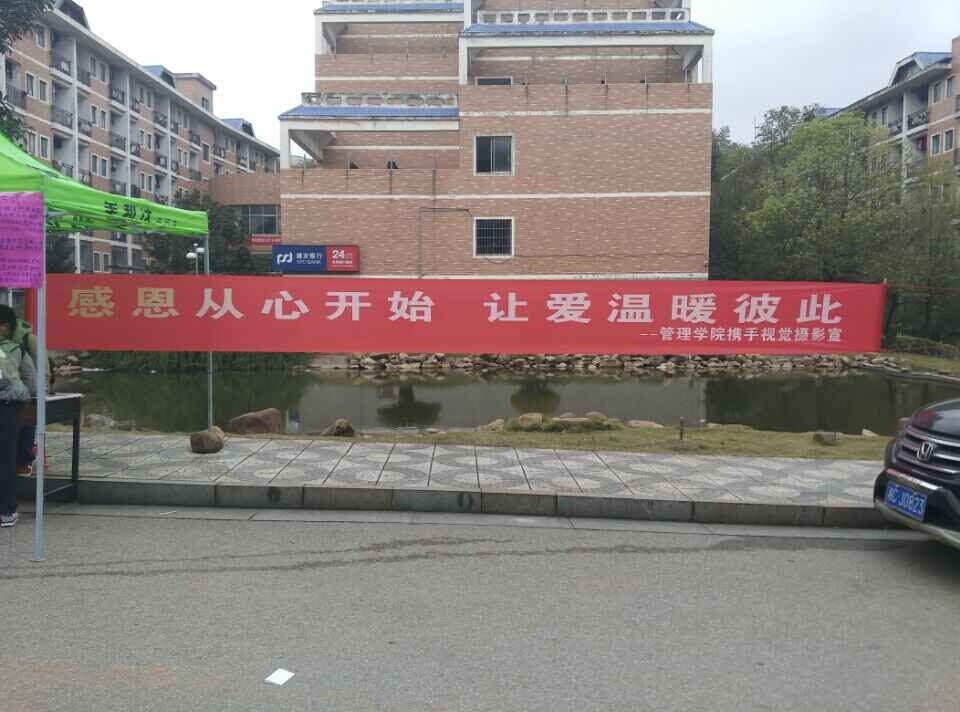 11月26日,由湖南工程公司管理公司团总支员工联合会主办,团总支员工联合会科技部、青年志愿者中心承办的管理公司“学会感恩,从我做起”系列活动在明德一、二食堂门口拉开帷幕。青志部部长李娜娜,科技部部长刘子溱、青志及科技部全体干事近40名成员参与了此次活动。