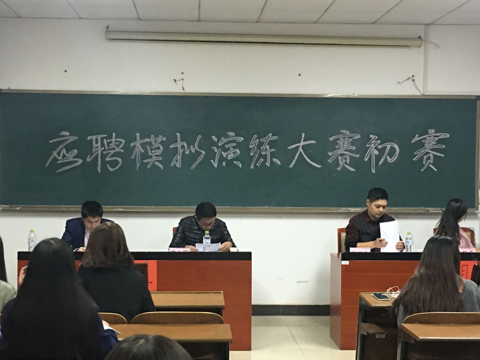 11月10日,由湖南工程公司管理公司组织部、就业部联合举办的应聘模拟演练大赛初赛在新校区教学楼G505准时进行。邀请到的评委分别是:金健乳业湘潭地区总代理廖建新,金健乳业股份有限公司营销部经理戴尚昊,湖南省“自强之星”王长雨和上届应聘模拟演练大赛亚军谢雄奇,面试对象为参赛选手。