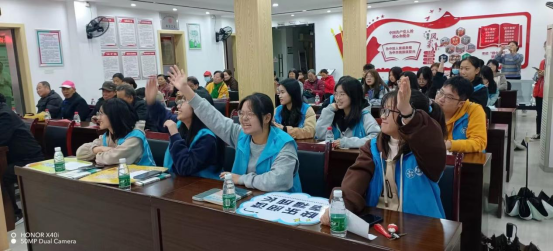 第一部分盘龙社区工作人员致辞;第二部分志愿者读书笔记分享;第三部分知识抢答;第四部分党员致辞;第五部分党员分享;第六部分大合唱。工作人员的致辞里提到“志愿者们是年轻鲜活的血液”,这句话给了志愿者们很大的激励和鼓舞,接着志愿者们上台分享了他们自己的读书笔记,包括读了什么样的书,在书中体会到了什么样的情感,什么样的精神,以及未来如何学习等等。正如老党员们说的“年轻的一代会在书中学到很多知识而这又不止是知识。”活动的最后,大家一起合唱了《我和我的祖国》,在洪亮昂扬的歌声中结束了此次的读书日讲座。
