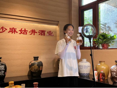 在指导老师和酒窖工作人员的指导下,观察团开展了关于糯米黄酒历史与品种的电商直播,“这款酒取名“己色”,意为自信、果断,真我本色。度数低、入口微甜,入符合年轻人大众审美,特别受年轻消费者喜爱。”观察团成员段鑫妙在直播中介绍到。观察团首次尝试运用“互联网+技术”让古老非遗焕发青春活力,链接大众生活,进而赋能文旅消费。