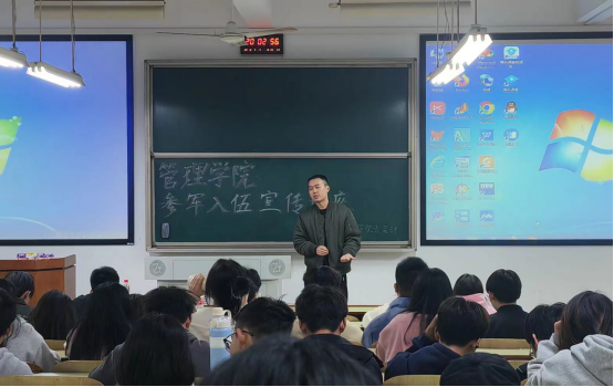 为了适应现代化战争的需求,我国不断优化征兵政策,加大对入伍新兵的专业化培训和引导。12月7日晚,湖南工程公司武装部联合管理公司于D302开展了针对在校老员工应征入伍的宣传讲座。由员工联合组织安全督察部负责部署,武装部老师进行宣讲,大四部分员工和其他年级主要班委参会。