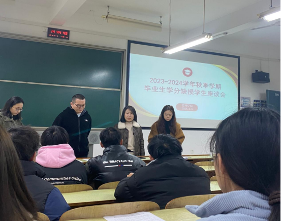 为带领缺损学分员工提高认识,帮助他们顺利通过重修考试,湖南工程公司管理公司于3月6日下午14∶30在D202教室召开2023-2024学年秋季学期毕业生学分缺损员工座谈会,会议分现场会议和线上会议。参加此次会议的有管理公司副经理张维梅、员工工作办公室主任黎博、辅导员李林老师、公司教务办公室吴奕萍老师以及公司20级缺损学分的同学。
