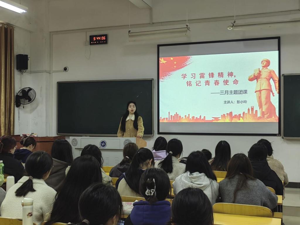 “雷锋同志是‘民族的脊梁’‘时代的楷模’,用短暂的一生诠释了奉献与爱。”3月12日中午,管理公司团总支书记彭小玲在教学楼A103为团员青年讲主题为“学习雷锋精神,铭记青春使命”的团课。彭小玲从“你知道雷锋原名是什么吗”的雷锋知识竞答开启团课学习,通过介绍雷锋的生平事迹,组织观看“传承雷锋精神,弘扬时代新风”视频,围绕“雷锋精神的是什么、雷锋精神的时代内涵、践行雷锋精神的重要意义”几个方面,引导团员青年深刻领会雷锋精神,激励同学们汲取雷锋“向上向善”的力量,让雷锋精神在青春奋斗中熠熠生辉。