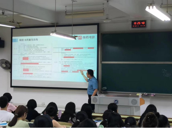 讲座过程中,刘健老师结合学长学姐成功考研的实例和历年真题就政治、英语、数学等核心科目进行了详细解读和考试趋势的分析,除了专业知识的讲解,讲座还设置了互动环节,让现场的考生有机会向刘健老师提问,针对每个人的实际问题获取个性化的指导。许多考生表示,通过这次讲座,他们不仅学到了实用的备考技巧,更重要的是收获了信心和动力,对即将到来的研究生考试充满了期待和信心。