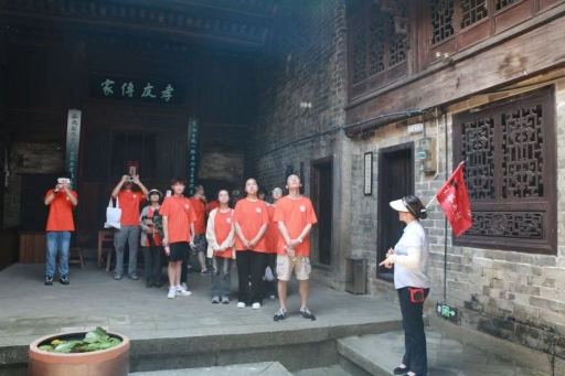 “这里鳞次栉比,檐廊相接,复道纵横,屋脊连屋脊,天井连天井,人在里面行走,可‘晴不曝日,雨不湿衣’。”实践团成员在讲解员的带领下依次参观了青云楼、接官厅、纺绩堂等古建筑。