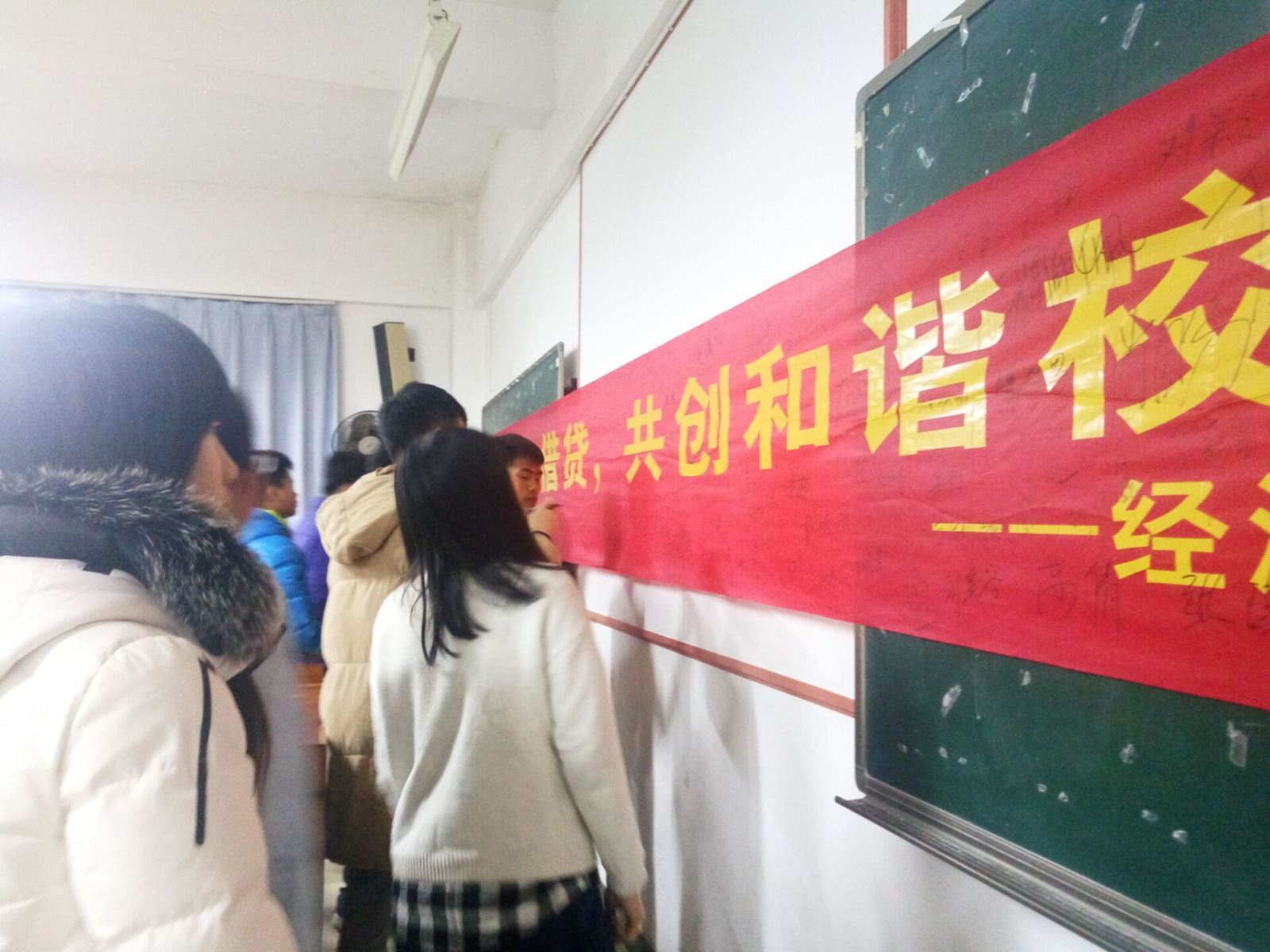 在班会上,各班班长结合案例向同学们进行讲解,分析“校园贷”存在和蔓延的特点及风险,提醒大家要养成正确的消费观念。伴随着互联网金融快速发展而滋生的校园借贷,利用青年员工消费潜力大的特点,迎合员工不成熟的消费心理与理财能力,在校园的渗透力逐步增大。同学们要明确意识到校园贷款的本质以及危害,坚决抵制不良校贷,保护自己的权益。班会后,员工干部组织全院同学在"拒绝不良借贷 共创和谐校园"主题横幅上签名,以示拒绝不良借贷地决心。