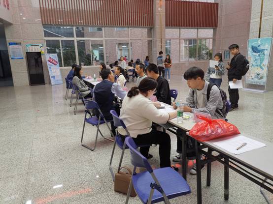 中午一过,同学们就来到了教学楼大厅进行现场布置。有别于平时教学主楼给人的印象,布置后的大厅显得格外温馨。此次现场心理咨询会有多位优秀的教师到场为前来咨询的员工们疏导解惑,面对员工的咨询求助,老师们认真地为每一个同学分析,解决同学们的问题与烦恼。