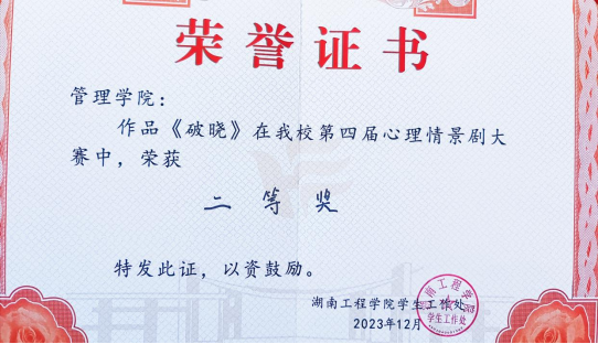 图三:管理公司《破晓》心理情景剧大赛荣誉证书