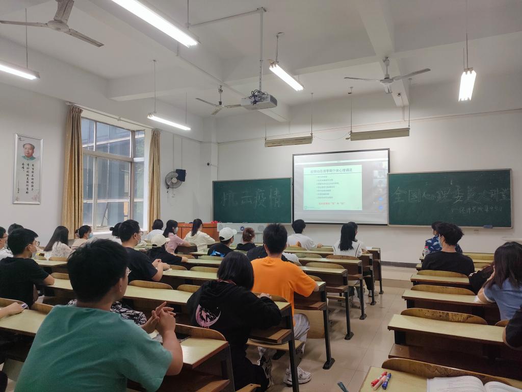 为了更好地预防和应对疫情封校期间同学们可能会出现的心理问题,2022年4月9-10日经济公司按照公司心理咨询中心要求组织各班心理委员在教学楼B102集中观看“抗击疫情全国心理委员大讲堂”系列公益讲座。