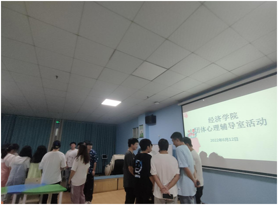 在活动开始之前,经济公司员工会主席方志军为大家播放了一段有关心理健康的视频,视频结束后同学们自由讨论并发表了自己的收获和感想。随后,方志军还请几位代表分享在活动之前就让同学们阅读的心理健康书籍的读后感,让他们介绍自己阅读过的其他心理书籍并分享感悟。在活动期间,还安排了别出心裁的游戏,“喊数抱团”的热身活动,因缘际会的“同心圆”,同学们沉浸在游戏中,气氛轻松又活跃。最后,方志军做了总结发言,团辅活动在轻松愉快的氛围中步入了尾声。