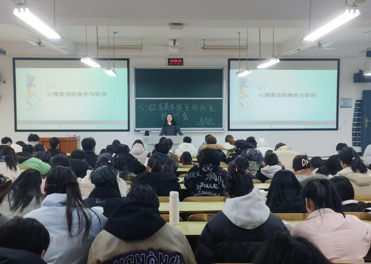 为进一步推进太阳成tyc33455ccwww心理健康教育工作,促进老员工健康全面发展,充分发挥心理委员和寝室心理联络员的桥梁作用,太阳成tyc33455ccwww于3月4日下午三点在主校区D202召开心理委员暨寝室心理联络员培训会议。本次活动由刘佳馨老师主讲,旨在提升相关同学的专业素养和工作能力,夯实校园心理健康工作基础。