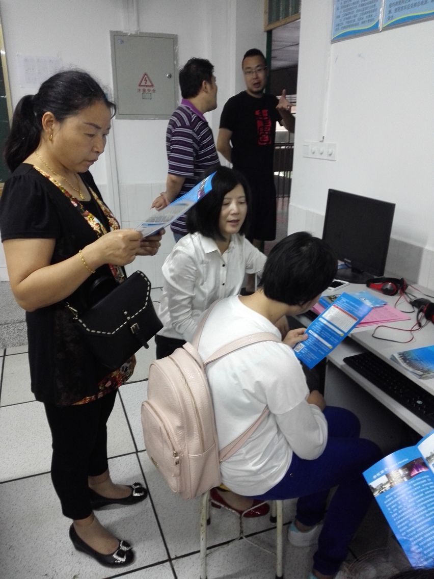 现场咨询的场地安排在二中的计算机机房。咨询过程中,两位老师对前来填报志愿的考生们详细地介绍了湖工的办学优势、学历层次和团队实力。根据考生们不同的类型和分数,对公司的二本专业、三本专业,以及国际教育公司的本、专科专业都进行了详细的讲解,耐心地解答了考生和家长们对于适读专业和录取等方面的疑问。很多本来打算报考高职高专的考生和家长们,以前对于公司的办学结构和特色不太了解,通过详细咨询后都表示将重点考虑报考公司国际教育公司的会计学或者商务英语专科专业;有多位美术类上线的考生,对公司设计艺术公司的专业非常感兴趣,两位老师为了进一步吸引他们,打开湖南工程公司的校网主页,对设计公司的每一个专业都进行了推介。在现场咨询讲解中,两位老师还向考生们展示了公司各公司在湖工微信公众平台上推送的H5,让考生和家长们对湖工的校园环境和专业介绍有了初步的现场真实感受。