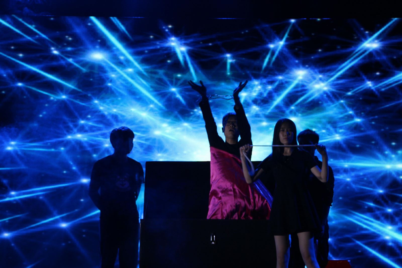 大四员工与大一员工合作带来的带来的魔术《Magic show》更是精彩绝伦,让我们见识了一场神秘变人魔术。