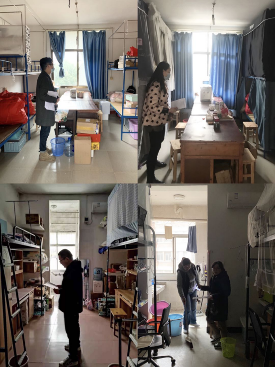 此次工作采取安全排查和走访交流相结合的方式,老师们对管理公司员工所在的滨江公寓3号楼、4号楼、5号楼,明德1号楼、2号楼、6号楼等宿舍分别进行摸排走访,并与未离校的员工开展了深入交流。在走访过程中,老师们重点对宿舍的水电安全、门窗关闭情况、卫生状况进行了检查,同时也表达了公司和老师对同学们的假期生活的关注,详细询问了同学们的离校时间和路程安排,了解员工实际困难,并结合当下的疫情发展形势,依据公司对疫情防控工作的安排部署,向同学们提出了宿舍安全卫生要求以及出行防护的相关建议。