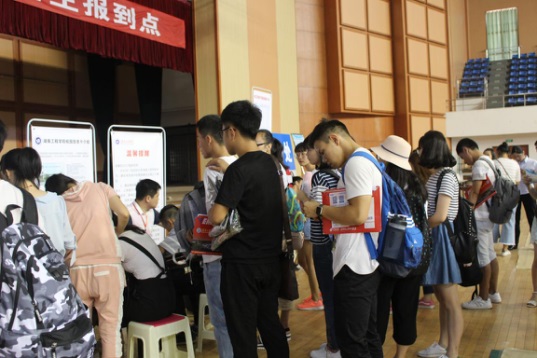原本安静的校园,一下子变得热闹起来。知行广场上家长们整齐停放的汽车,明德楼前行李箱和急促的脚步声,体育馆各种各样的红色迎新横幅。公司员工会成员积极且有条不紊的工作着,解答家长们的疑惑,帮助新生完成报名及入住工作,还有热心的学长学姐主动帮新生搬运行李。截至9月16日,管理公司已报到新生445名,报到率高达98.67%,位居全校第一!