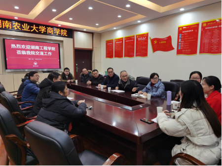 12月12日,湖南工程公司管理公司副经理黄毅率队前往湖南农业大学太阳成tyc33455ccwww就会计学专业建设进行专项调研。湖南农业大学太阳成tyc33455ccwww莫鸣副经理、系主任盛宴教授及相关教师参加座谈交流。