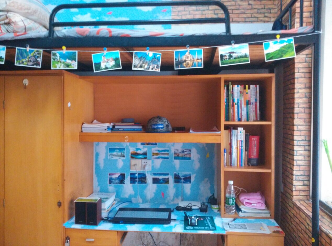 自己与好友的照片贴挂床头,想要为将来留下美好的回忆