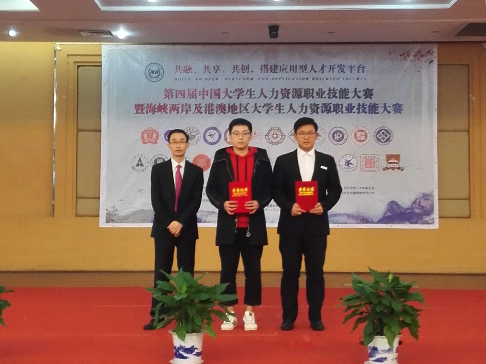 2018年10月19日-21日,由劳动经济学会和中国劳动关系公司联合主办的第四届中国老员工人力资源职业技能大赛(HRU)中东赛区分区赛于南昌市南昌大学如期举行。公司参赛代表队由管理公司人力资源专业15级员工张子鸣、文博涵、全湘君和向红四名同学组成,由管理公司曹哲文老师担任指导老师带队参赛。经过为期三天的激烈比拼,公司表现卓越,荣获中东赛区团队一等奖,并晋级于北京举行的第四届中国老员工人力资源职业技能大赛总决赛。其中张子鸣获个人单项特等奖,向红获单项二等奖,文博涵获单项二等奖,全湘君获单项三等奖。