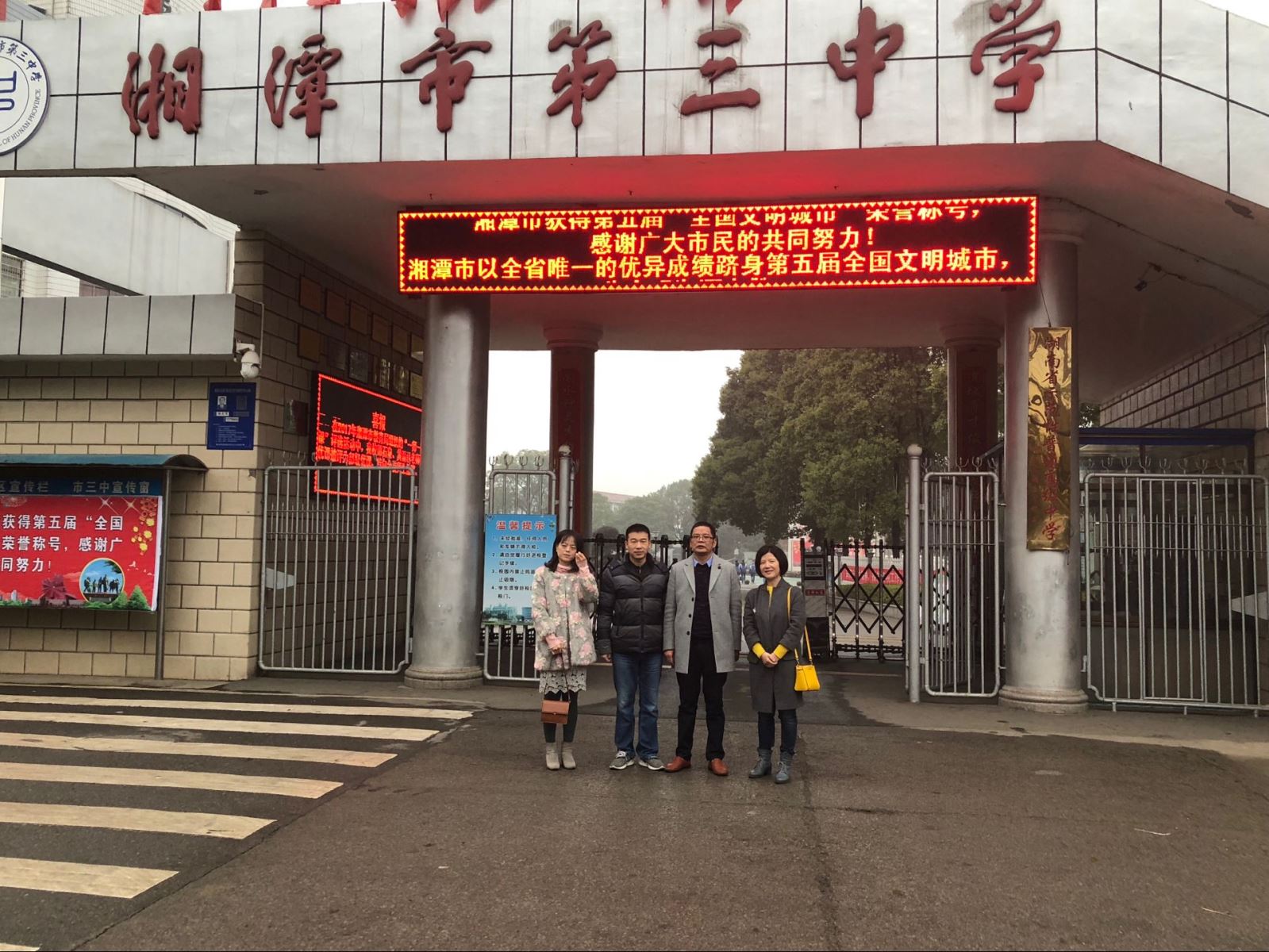 最后双方在湘潭市第三中学的校门口合影留念。