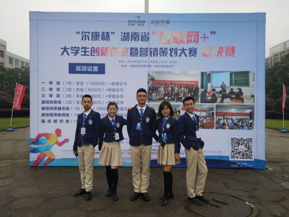 “紫薇来了”团队,来自三院四专业,命运的安排下,他们相遇了,思想的碰撞,语言的交流,一股说不出道不明的氛围萦绕着周身。队长蒋玲婷来自管理公司工商管理1401班,队员分别来自经济公司国际经济与贸易14级的杜芸、田瑞丰和金融工程1401班张宇翔,机械设计制造及其自动化1403班的李远熠,这就是“紫薇来了”团队。经历过“尔康杯”校级比赛的层层选拔,以“今天没吃药,尔康陪你闹”逗趣微视频打造微博话题,并且自己拍摄了宣传视频小样,在短短几天时间收获七十万点击量,获得校级冠军,冲进省级大赛。