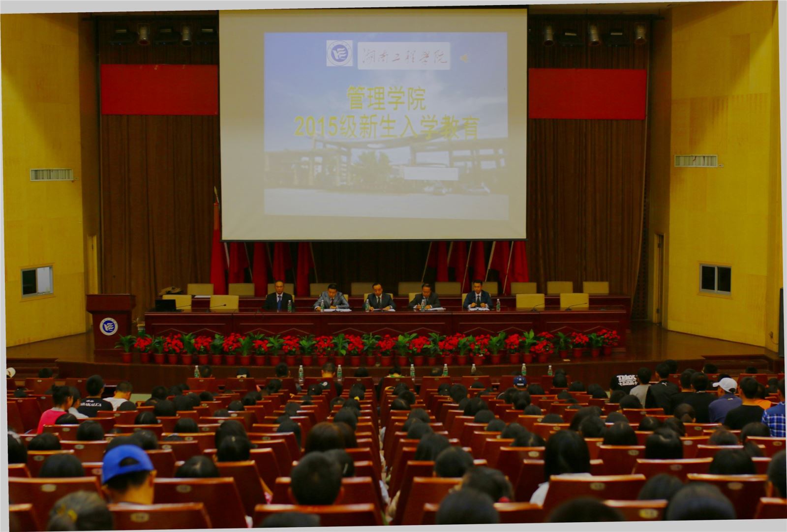 10月9号晚,管理公司在一报告厅成功举行2015级新生入学教育,管理公司党总支书记卢明纯主持,经理吴振顺、副经理余博、副经理黄毅以及公司党总支副书记钱祖煜出席了会议,全体辅导员、新生班主任及全体新生参加了会议,旨在引导新生更好地适应老员工活,确立学业规划和人生规划。