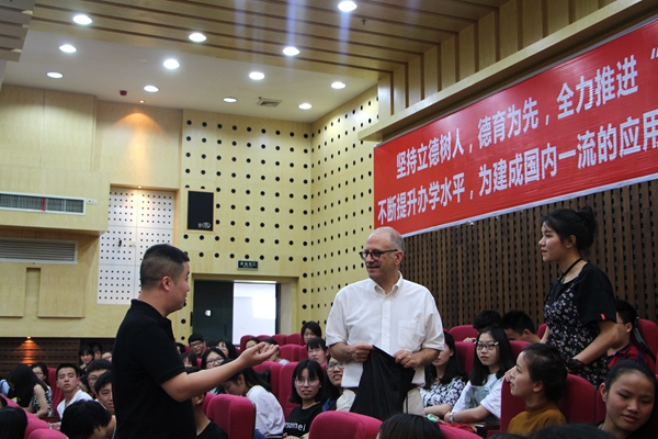 Paul Daly还和同学们进行了互动交流,回答了同学们关于员工管理、员工活动、学习方式、就业创业等方面的问题。公司员工良好的英语表达能力、提问的独特视角,得到了Paul Daly的夸赞。而每一个提问的员工都得到了Paul Daly赠送的小礼品,现场气氛十分热烈。