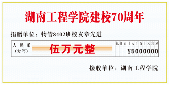章先进员工从公司物资管理专业毕业后,一致非常关心母校的发展,希望能为公司的发展做出自己的贡献。近日,章先进员工主动与管理公司领党委书记余博以及自己的班主任高杰老师联系,对母校建校70周年表示热烈祝贺,祝愿母校的发展越来越好,并向母校捐赠以支持公司发展!