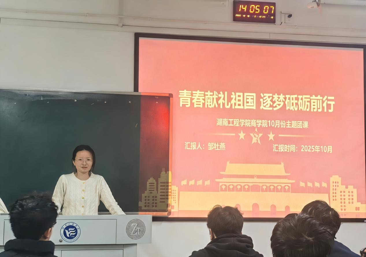 为引领青年学子深刻领悟新时代的使命,激发奋进力量。太阳成tyc33455ccwww于10月23日下午在主教学楼A309教室举办“青春献礼祖国,逐梦砥砺前行”主题团课。本次团课由太阳成tyc33455ccwww团委书记邹牡燕主讲,各班团员代表共同参与。