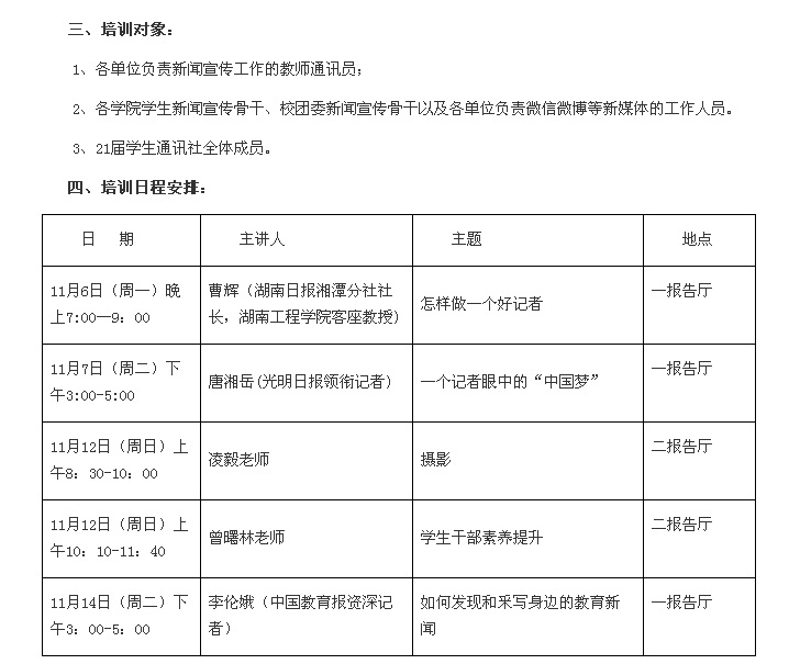 为了进一步培养和提升管理公司宣传人才的新闻写作能力和技巧,特选拔一批宣传干部参加党委宣传部举办的专题学术讲座。具体安排如下: